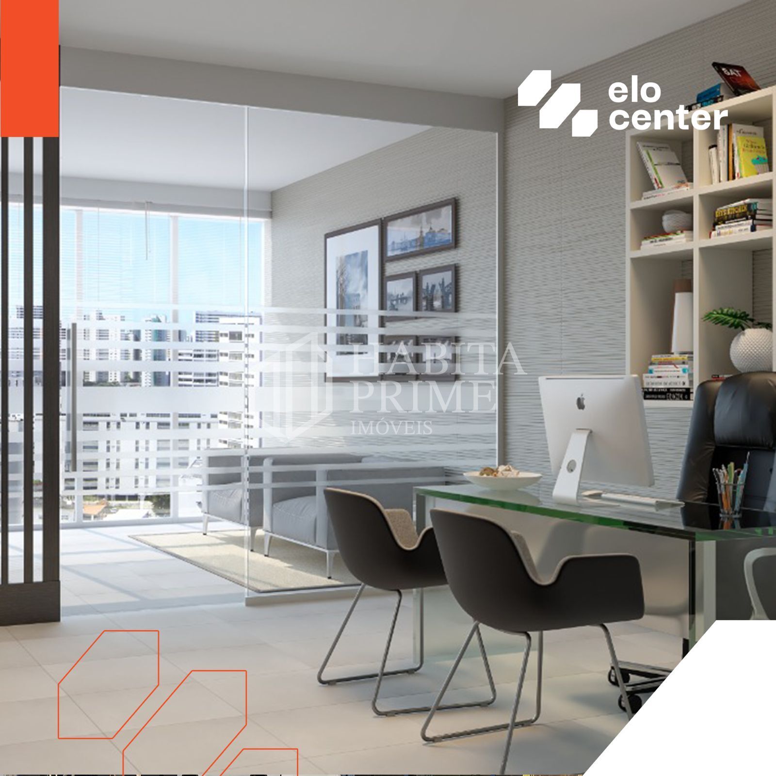 - 88 salas empresariais, com áreas de 29,10 m² e 37,10 m², integradas por 3 elevadores e sistema de reconhecimento facial para segurança;